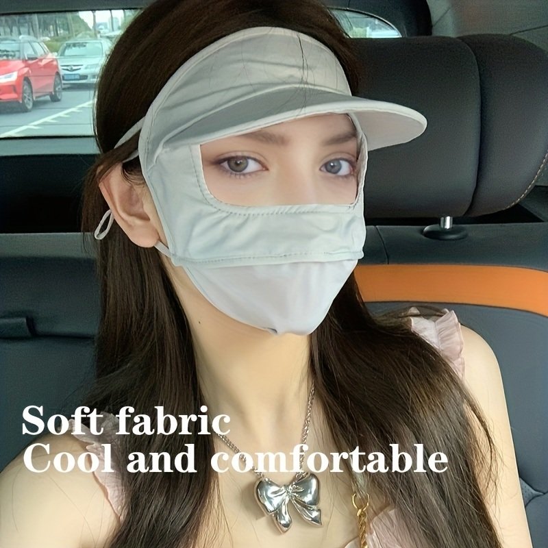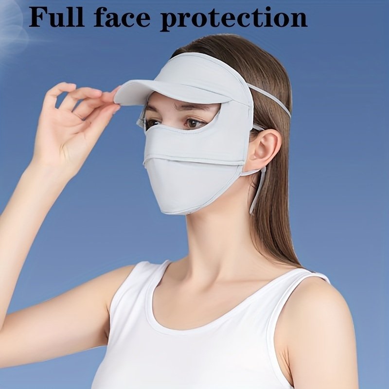 1 Sun Protection Fishing Hat Foldable Ponytail Hat Outdoor Ice Silk Breathable Sunscreen Full Face With Hood Camping