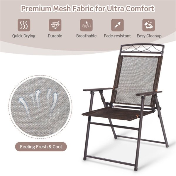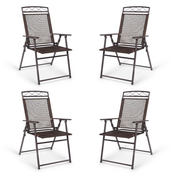 4pcs Patio Folding Sling Chairs Camping Chair,Steel,Coffee Color